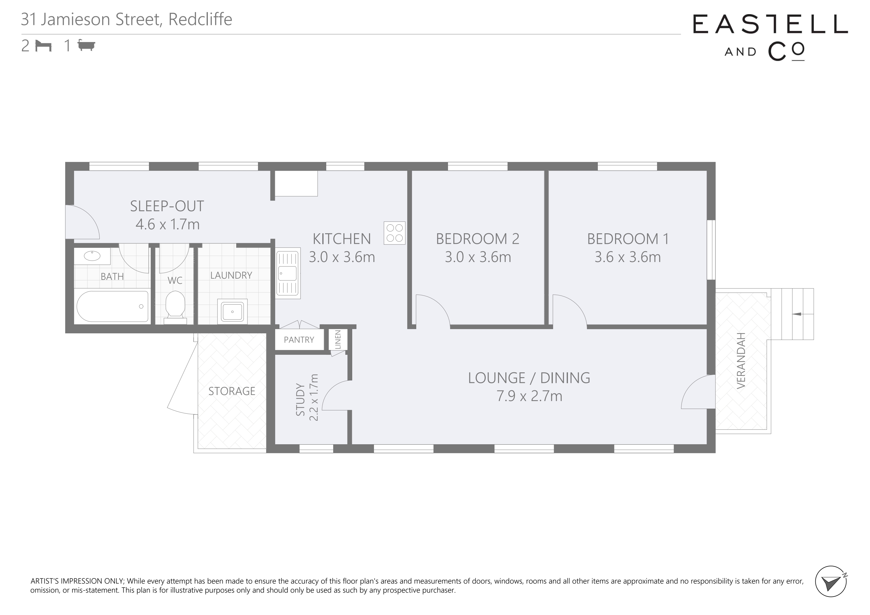 Step inside to discover two spacious bedrooms, a bright sunroom, and a separate study — perfect for working from home or creative space. The open-plan living and dining area flows seamlessly to a covered outdoor entertaining space, providing plenty of room to relax or entertain while enjoying the Redcliffe lifestyle.
