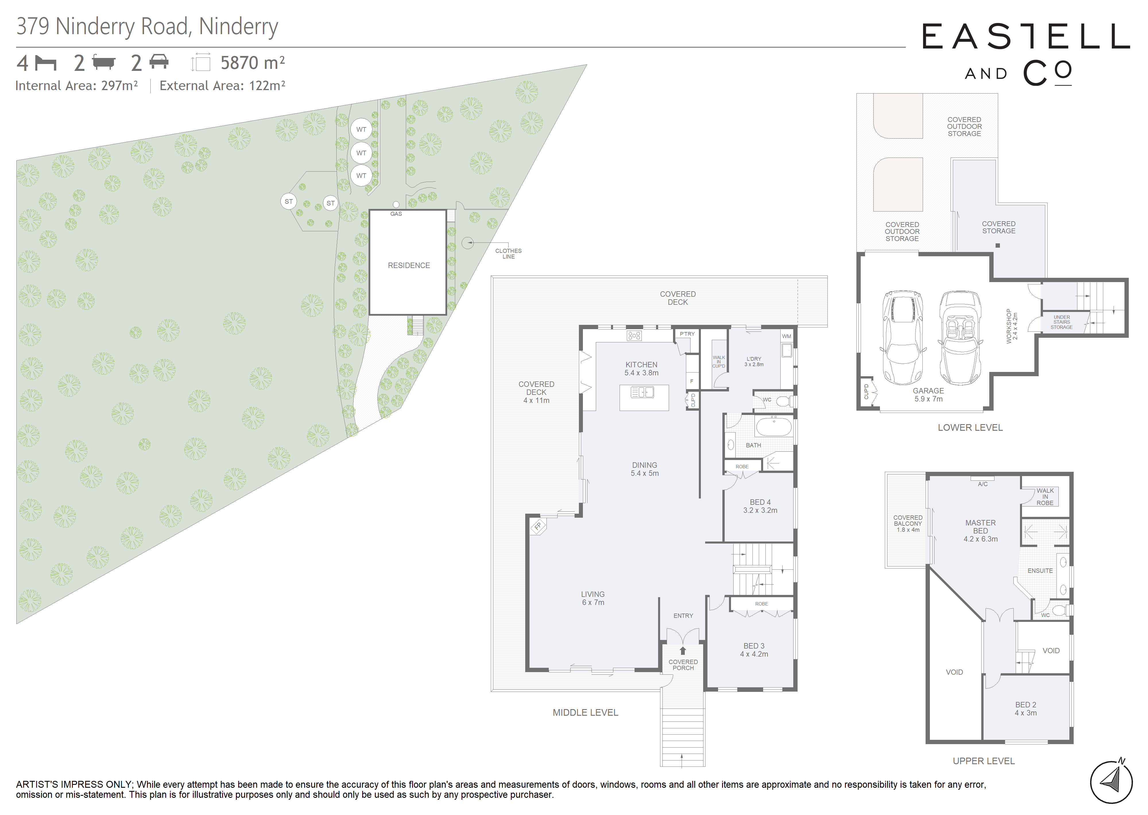 Making for a flexible layout with adaptability for a home office or parent’s lounge, generous accommodations are zoned across two levels and include an ultra-private master suite hosting a dedicated balcony and luxury dual shower ensuite, whilst three further bedrooms are complete with built-in robes and share the family-sized central bathroom and well equipped laundry. Further highlights include a double remote garage with workshop and internal entry on the lower level, abundant storage across the property, split system air conditioner, wood heater and water tanks.