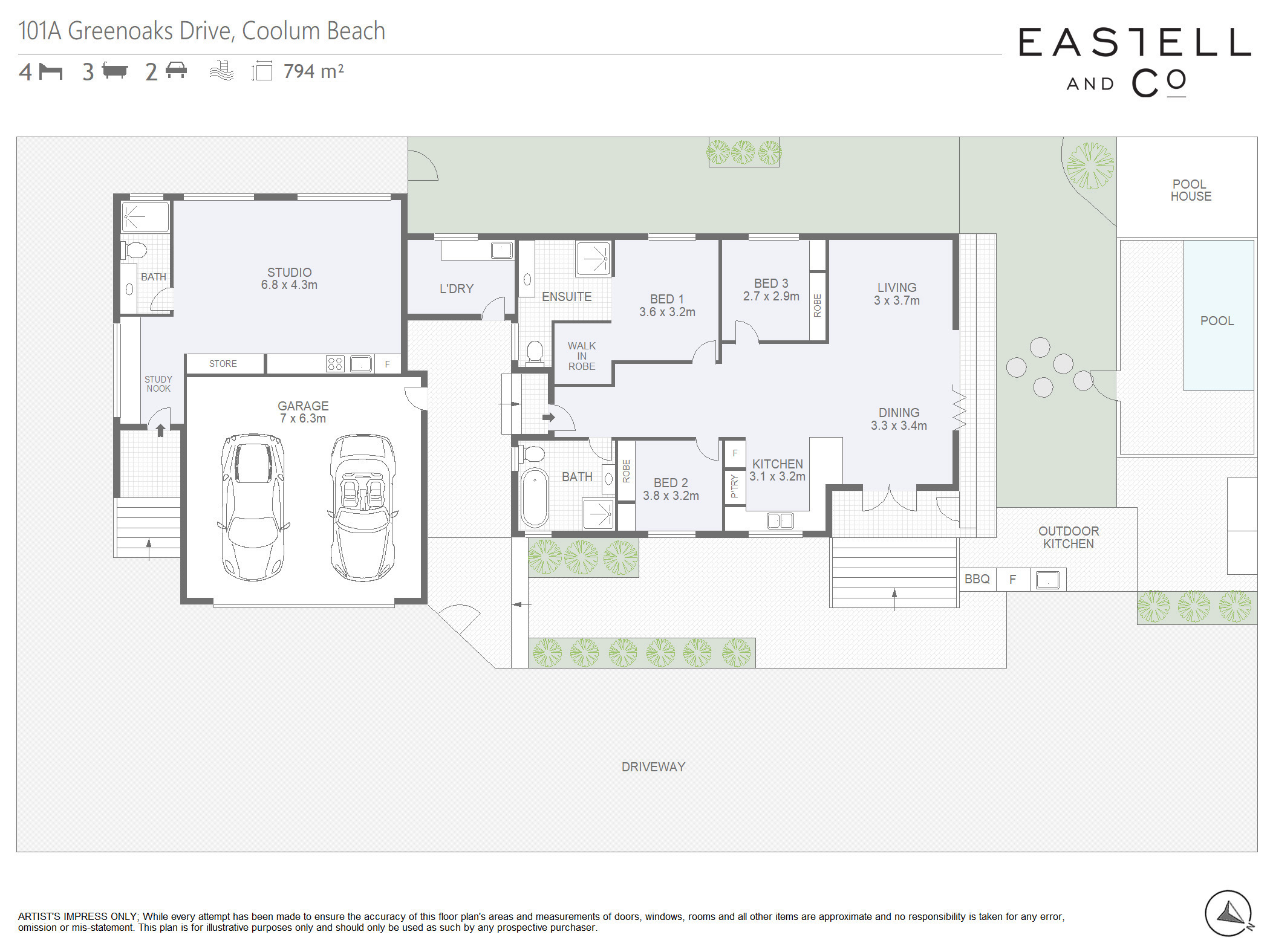 Positioned in a leafy, tree-lined cul-de-sac, this beautifully proportioned single-level home has been designed for both style and function, with soaring ceilings, pale oak flooring, and expansive open-plan living flowing seamlessly outdoors. A casually elegant kitchen with stone benchtops and premium appliances anchors the living and dining zone, spilling onto a private alfresco retreat with built-in BBQ, heated pool, outdoor shower, and sun-drenched poolside lounging. Venetian plaster feature walls, designer skylights, travertine floors, and ducted air conditioning elevate the home’s contemporary coastal aesthetic. Ideal for every stage of life, the layout adapts to modern family needs while offering space, privacy, and effortless connection to the outdoors.