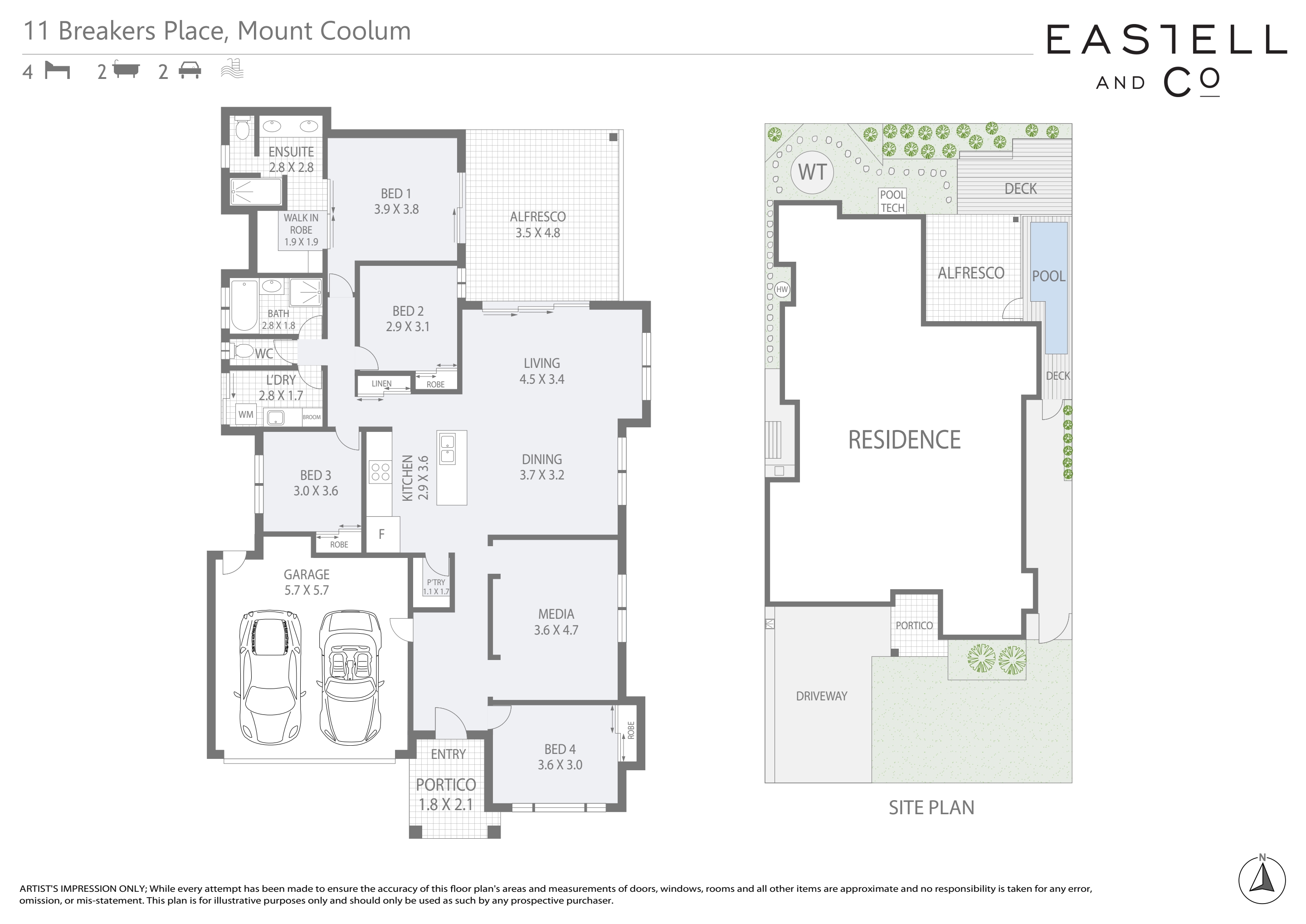• Open plan living and dining, separate media room